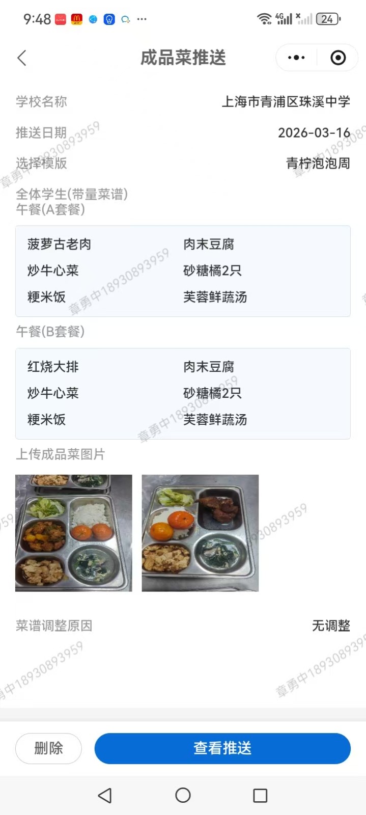 第一周学生AB餐公示